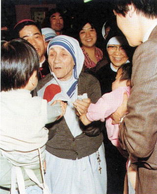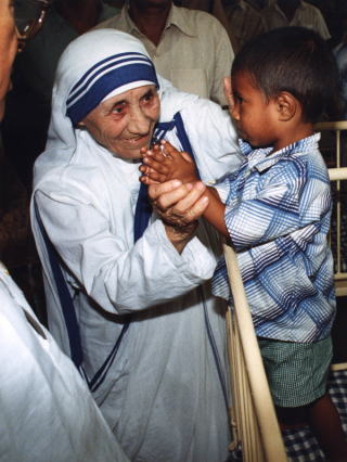 マザー・テレサは1910年に旧ユーゴスラビア(現在の北マケドニア共和国)のスコピエという地で生まれました。本名はアグネス・ゴンジャ・ボヤジュと言います。 父は地元の名士である二コラ、母はドラナフィル、ほかに姉と兄がいました。父はアグネスが9歳の時に死去しています。まだうら若い頃から修道女として献身的に働き、18歳の時修道院の教師として当時のイギリス領インドのベンガル地方に渡り学校や修道会の指導にあたりながら、1937年には一生をイエス・キリストに捧げることを意味する終生誓願を立てます。この頃、修道院外の学校でも教える機会ができ、スラムの過酷な住環境とそこで暮らす貧しい人々の現実に直面します。 1946年9月、マザー・テレサは汽車の中で「すべてを捨て、貧しい人のために働きなさい」という啓示を受けたとされ、この日は「決意の日」と言い伝えられています。 38歳のとき、それまで在籍していた修道会を退会して現地に留まり、活動を本格的に始めました。修道院を出たマザー・テレサはサリーを身にまとい、コルカタのスラムで、 学校に通えない貧しい子供を集めて青空教室を始めます。この頃、かつての教え子が最初の協力者としてマザー・テレサのもとにやってきます。のちに補佐役として 支えるシスター・アグネスでした。1950年、マザー・テレサはインドに国籍を移します。そして12名のメンバーで「神の愛の宣教者会」を 創立し、貧困と疫病が蔓延しているコルカタで学校や孤児院、さらに、死を間近にした人を介護するホスピス「死を待つ人の家」を開設しました。 それから活動の幅は広がり、インドをはじめ世界55カ国に211の修道院が開設され、会員も2000人を超えたとされています。 マザー・テレサはその生涯のすべてをそのために捧げたのです。 マザーテレサは1981年、1982年、1984年と3度、日本を訪問しています。来日時彼女は言いました。「日本の皆さんに知ってほしいことがあります。それは自分たちの働きが単なる医療活動が目的ではないんだということ、…人の苦しみ、悲しみ、 痛みというものを私たちがどのように受け止め、それをどのようにいやそうとしているかが大事なんです。」また「人と人とのコミュニケーションというのは、愛の代名詞 なんですよ」と。 マザー・テレサは、1997年9月5日にカルカッタの修道院で、その87歳の生涯を閉じました。ノーベル平和賞を受賞した彼女が世界に残した平和的遺産は、実に大きなもの だったと思います。受賞の際の彼女の言葉です。「私はノーベル平和賞にふさわしい者ではありません。けれど世界中の貧しい人々に代わって、この名誉ある賞をいただき ます。私のための受賞晩餐会はいりません。どうぞ、そのお金を貧しい人々のためにお使い下さい」 「人間にとって最大の不幸は何か」という自らの問いかけに対し、マザー・テレサは「貧困、飢え、病や障害、歳をとることは不幸のようですが、それはただ不自由なだけです。 見捨てられた状態、それが最大の不幸です」「愛の反対は憎しみではありません。それは、愛がないことです。無関心です。だれにも望まれていないと 感じるとき、人はもっとも深く傷つきます」と言いきっておられます。マザーの言葉は、どれを取ってみても、そしてどんなに短いものでも、心に深く染み渡ります。 20世紀を代表する世界的なお母さんだったと言われているマザーテレサの活動は、世界中の人々の共感を呼び、その遺志を引き継いで活動する聖職者は世界百カ国各地に及んでいます。 今日、家庭や学校においても、ありのままの自分の存在を受け止めてくれる場がなく、孤独のゆえに引き起こされる犯罪が後を絶ちません。私たち一人ひとりがマザー・テレサのように貧しい人、悩む人、病気の人に手を差し伸べる心を持つことが出来ますように、お互いに愛し合い、許し合い、1人でも多くの人にイエス・キリストのみむねを伝え、1人でも多くの人に限りなき主の愛が注がれますようこのクリスマスを迎えるにあたりお祈りします。 あなたがたは神に選ばれ、聖なる者とされ、愛されているのですから、憐れみの心、慈愛、謙遜、柔和、寛容を身に着けなさい。互いに忍び合い、責めるべきことがあっても、赦し合いなさい。主があなたがたを赦してくださったように、あなたがたも同じようにしなさい。」(コロサイの信徒への手紙3章12〜13節)